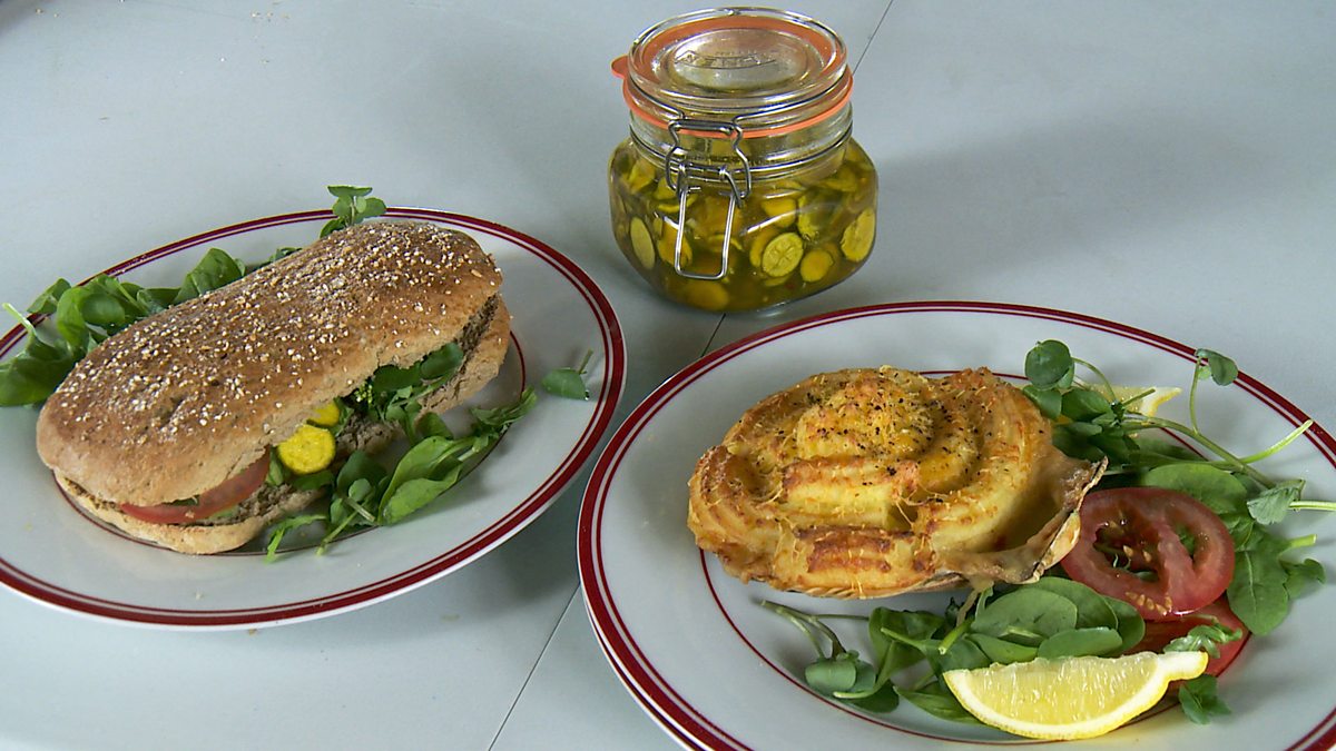 Roddy makes pickle along with some bere barley ciabatta-style rolls which he uses for an Orkney Buffalo steak sandwich. He also makes an Orkney-inspired variation of Coquilles Saint-Jacques. Uisdean experiments with consomme and cooks north Ronaldsay lamb with a barley risotto.