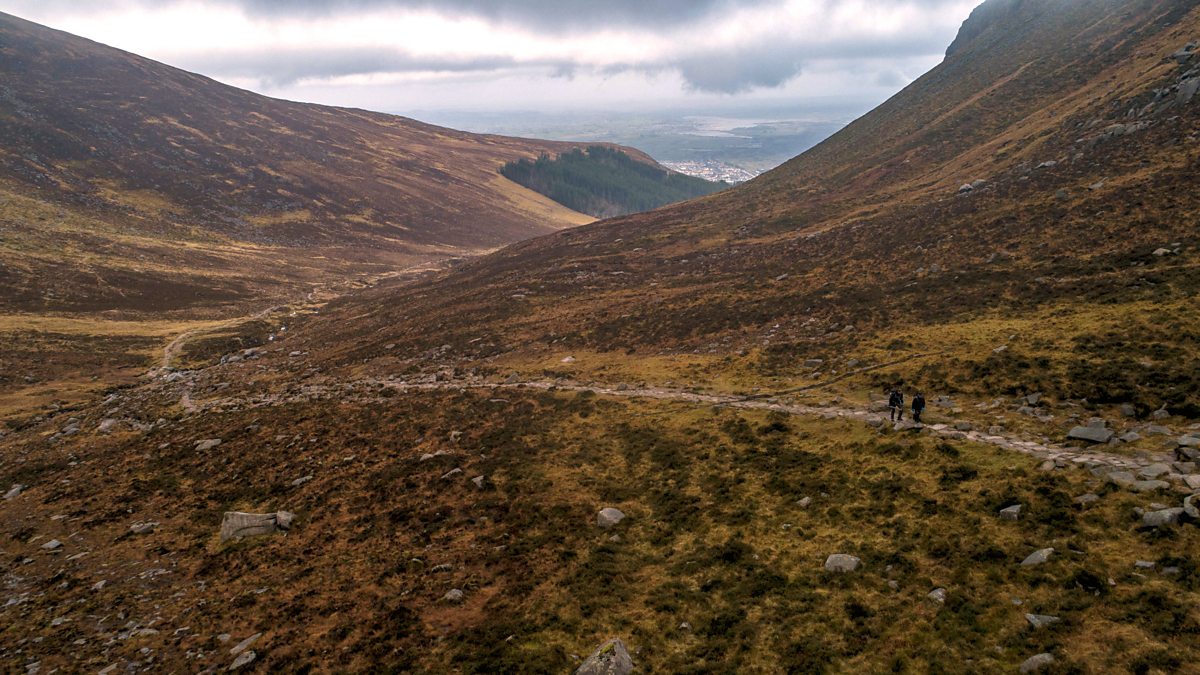 From the foot of the Mournes Mountains with a project to repair paths, the history of St Patrick's Church and the landscapes of the Northern Counties Railway celebrated in a new play. Presented by Anne Marie McAleese.