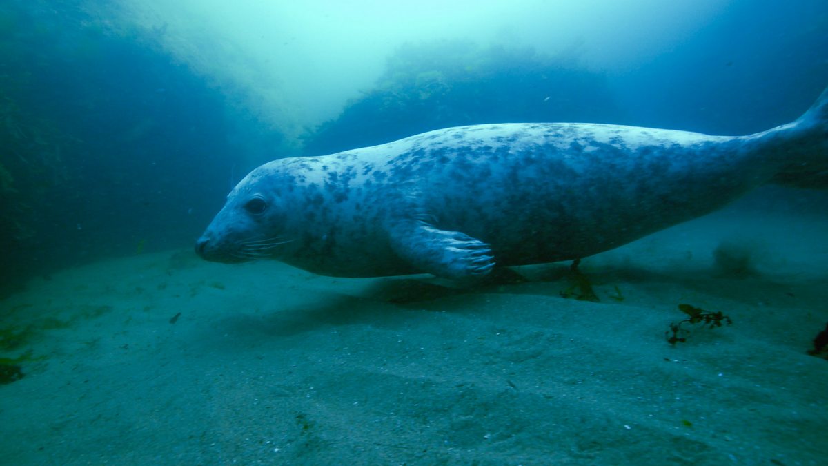 A mile offshore the Pembrokeshire coast is Ramsay Island where female grey seals and their pups relax in the late season sunshine. Seals spend most of their time in the water, but for a few weeks they come ashore to give birth, and Ramsay is the largest breeding colony in southern Britain.