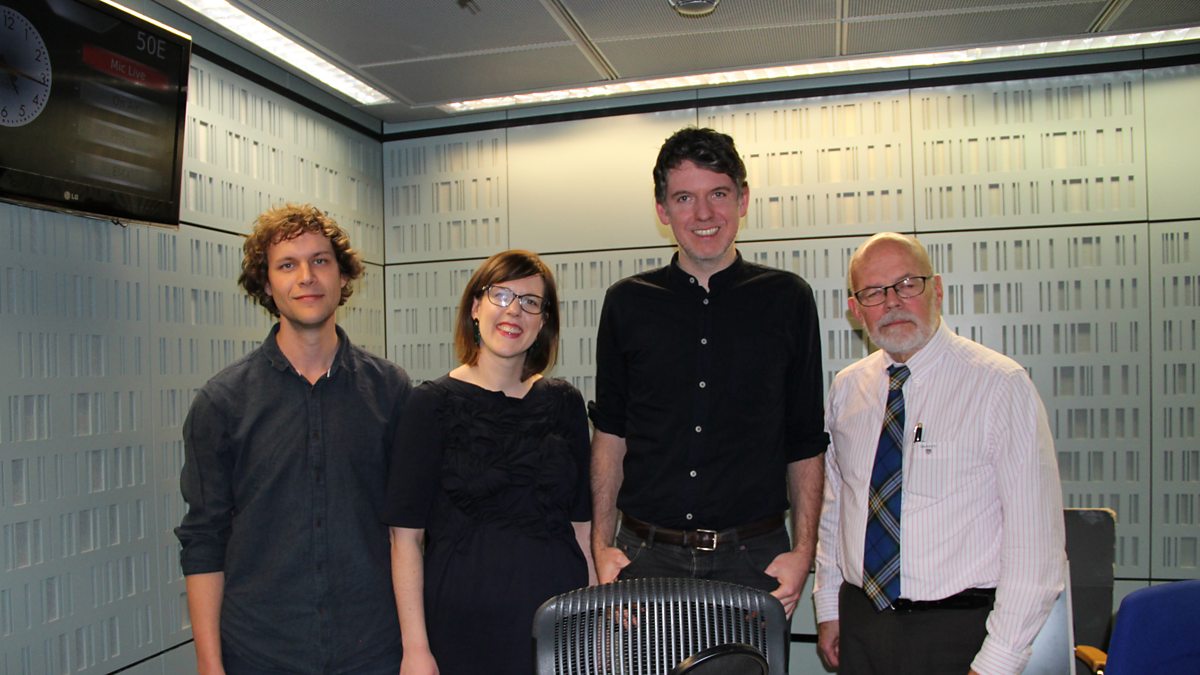 Main image: L-R Peter Riley, Katie McGettigan, presenter Laurence Scott and Michael Schmidt in the Free Thinking studio (Elaine Showalter was in Washington).