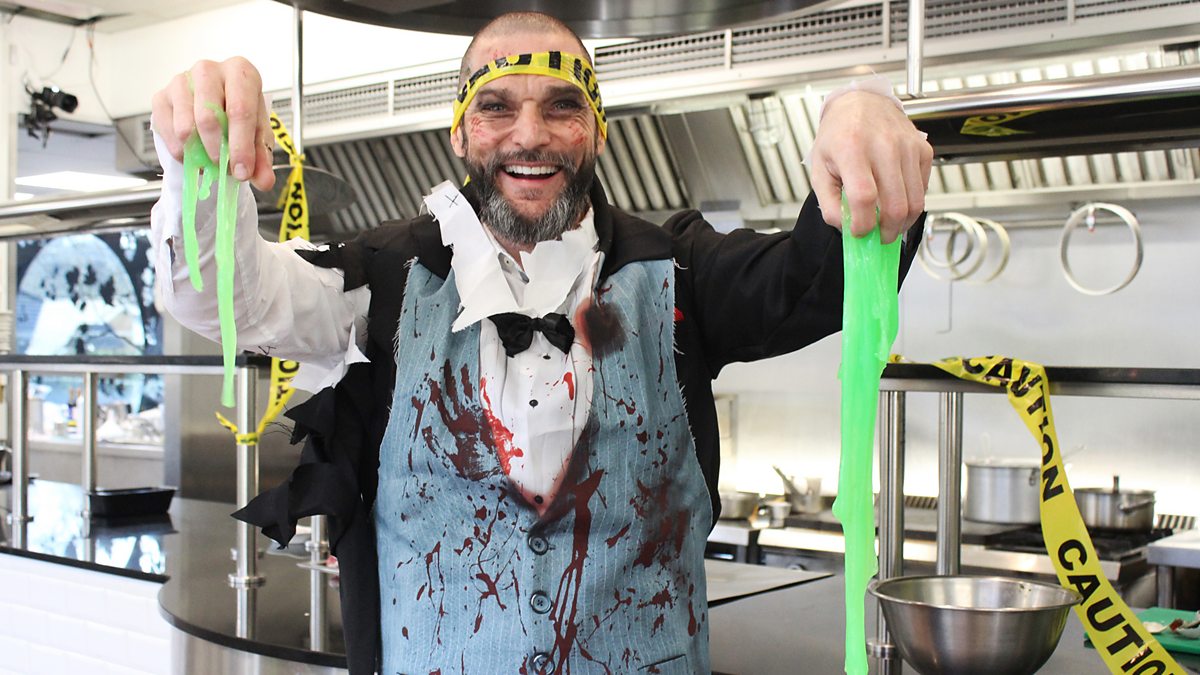 The Kitchen Crew get their heads round the zombie-themed menu of brain blancmange and blood risotto, while the Restaurant Crew endure difficult diners Johnny and Inel.