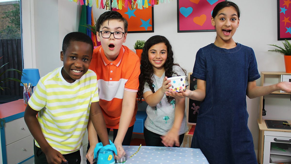 Meanwhile, Curtis and India whip up slimy ponds and swampy creatures from jelly and roll-out icing. And at the party they have a fine time with giant slime.