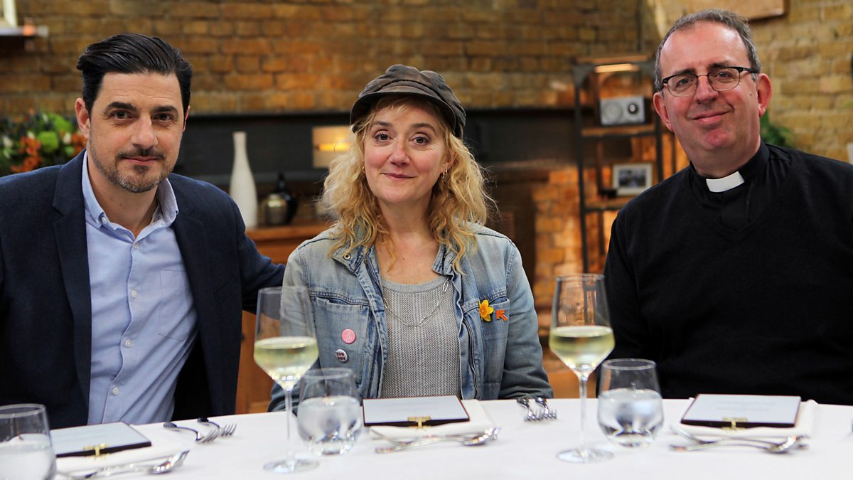 The remaining celebrities cook a faultless two-course meal for actors Alexis Conran and Sophie Thompson and TV personality and man of the cloth Reverend Richard Coles.