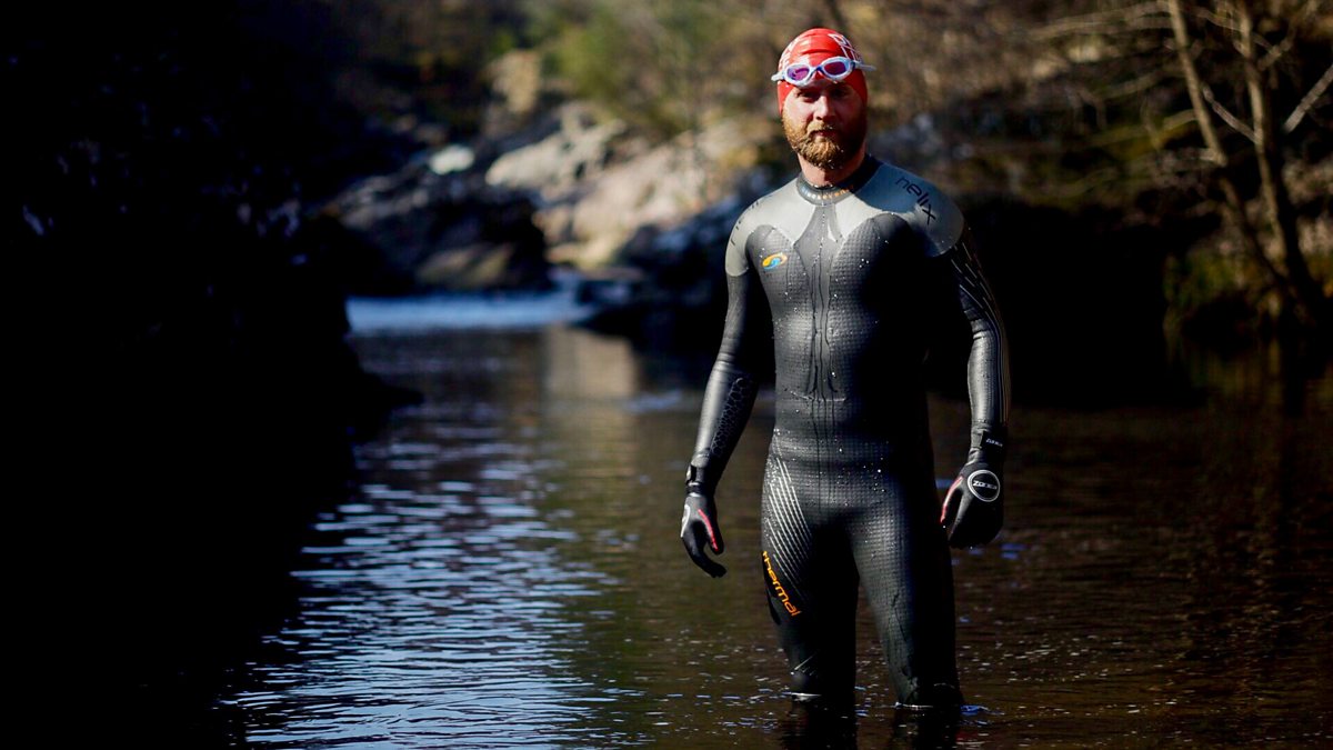One was to swim in River Truim as it flows north in Badenoch into the Spey. Most of the river is calm and flat, but in parts the water has chiselled its way through the granite resulting in a series of waterfalls. Calum swims upstream which proves challenging until he comes to Salmon’s Pool and a chance for some dynamic fun in the water.