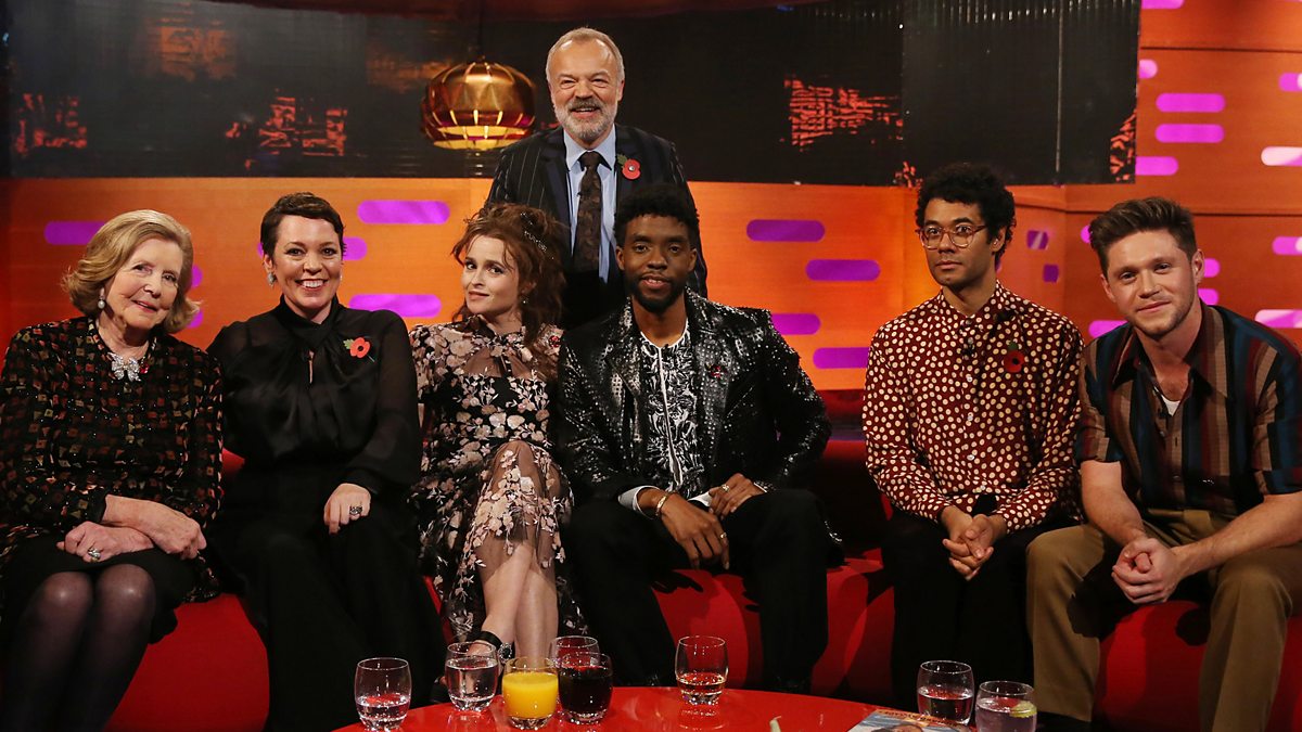 Graham's guests are Olivia Colman and Helena Bonham Carter, both joining the cast of The Crown, actor Chadwick Boseman and Richard Ayoade. With music from Niall Horan.