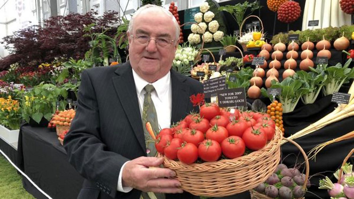 Y garddwr Medwyn Williams sy'n sgwrsio gyda Beti George. Gardener Medwyn Williams chats to Beti George.
