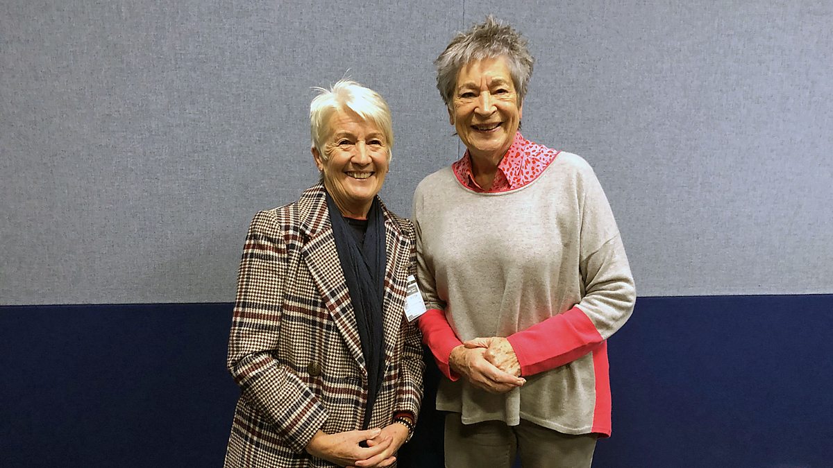 Y rhedwr marathonau ultra Ann Evans sy'n sgwrsio gyda Beti George. Ultra marathon runner Ann Evans chats to Beti George.