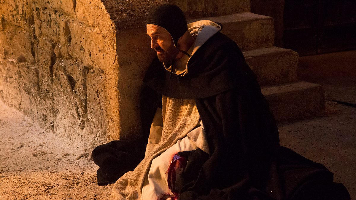 As the monks crowd around the dead Malachia, William questions who killed this man since Bernardo had cleverly found and confined the murderer of the other monks. Bernardo retorts that he had not claimed to have confined the law or the criminals at large in the abbey. All that remains for him to do is to burn the witch and warns that only the pope will decide the fate of the Franciscans.