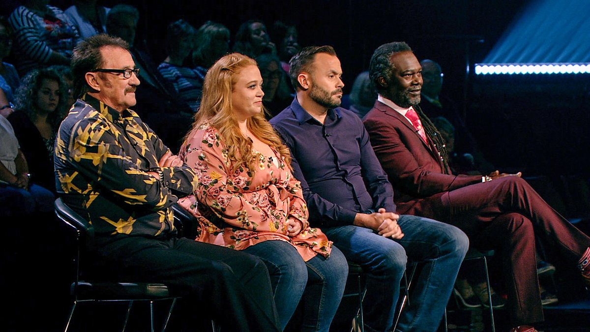 John Humphrys asks the questions as four famous faces go under the spotlight in another episode of the classic quiz, donating their winnings to their chosen charities. Comedian Paul Chuckle, actress Amanda Henderson, comedian Geoff Norcott and chef Levi Roots are in the famous black chair tonight answering questions on English football clubs, songs from animated Disney films, the Star Wars prequel trilogy and reggae music.