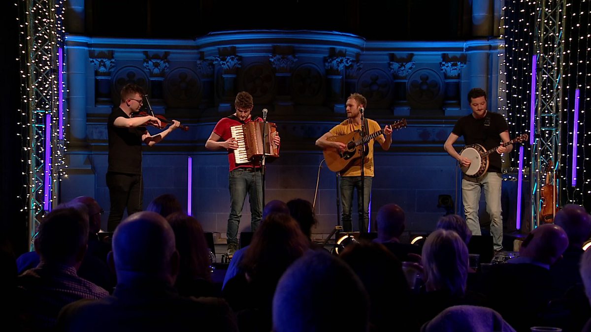 An còmhlan Dallahan a’ seinn Jail Song aig an fhèis Celtic Connections 2020.
