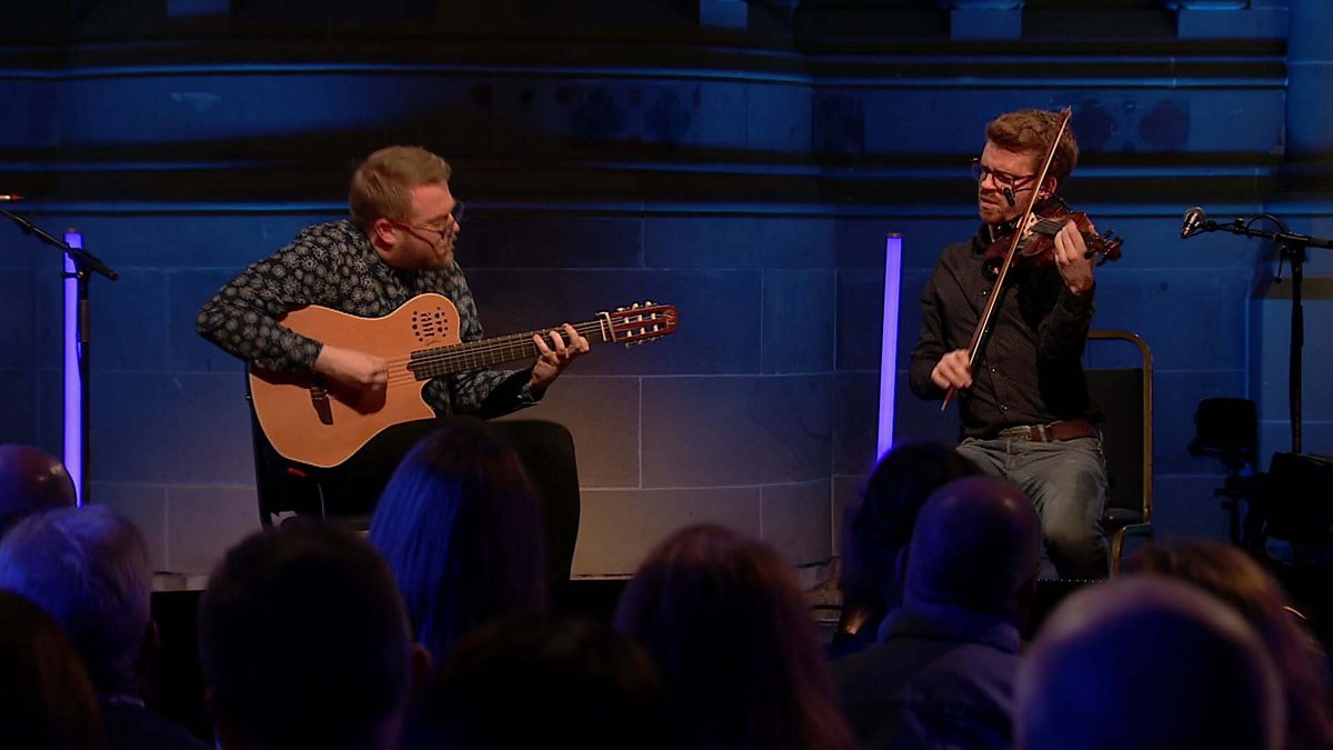 Featuring a fiddle and guitar duo performance rooted in Scottish and Irish traditions.