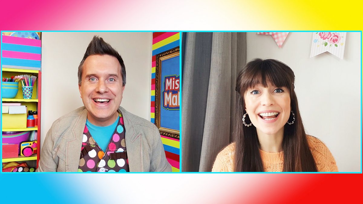 Mister Maker video calls his CBeebies friend Rebecca and tells her about his plans to make some art based on a jar. Rebecca can’t believe this, but Mister Maker assures her that extraordinary art can be inspired by the most ordinary things. Using different shaped sponge pieces, Mister Maker creates a colourful pop art painting!