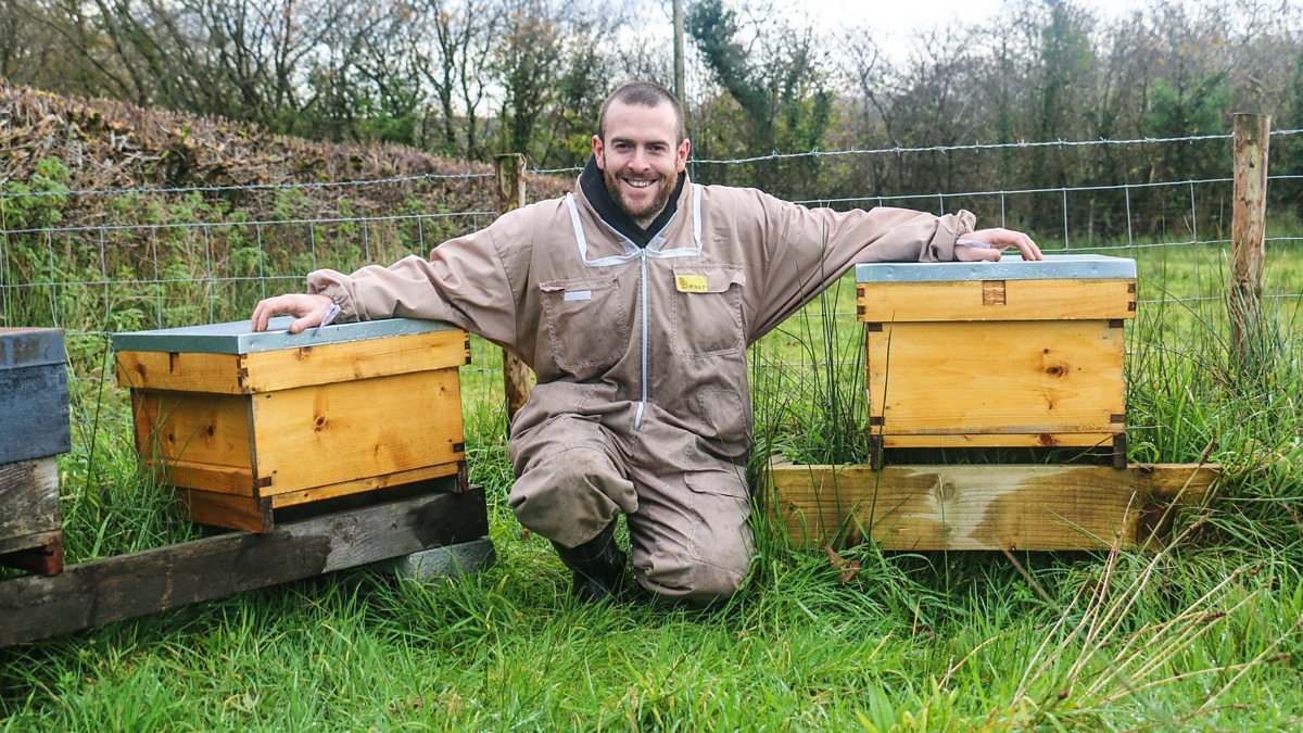 Hanes Gruffydd ac Angharad Rees sy'n cadw gwenyn a chynhyrchu mêl yn ardal Dryslwyn, Sir Gaerfyrddin.
