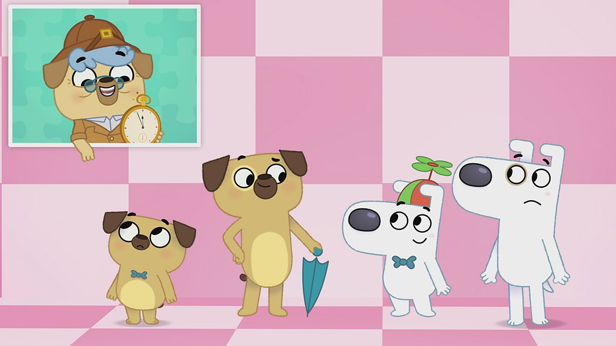 In their adventure, Dog and Pug meet Granny Pug, who makes them solve three puzzles. They solve all of them just in time, before Dog comes back to the bookshop and solves his own problem.