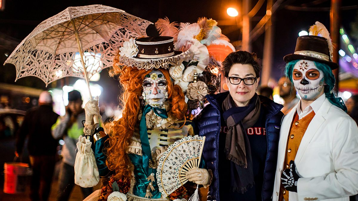 Then, in Nogales, Sue joins a parade celebrating the Day of the Dead, Mexico’s biggest festival. Rather than a dark night of terror and mischief, it’s an explosion of life-affirming joy. The next day is a national holiday, and families all around the country gather in cemeteries, commemorating the lives of lost relatives. Sue is fascinated by the different approach Mexicans have to death, and finds that there is a huge amount to learn about life here.