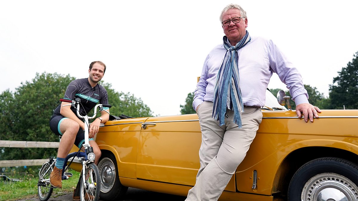 Tim comes over all Olympic-cyclist with the lycra, looking more and more at home on his bike. Former PE teacher Phil takes a break from driving the old Triumph to walk through the treetops at the national arboretum - a challenge for a man with vertigo!