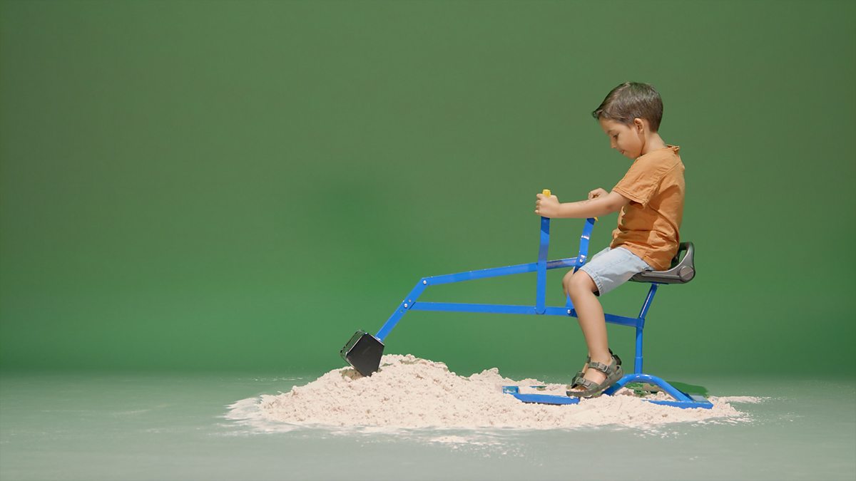 Cognitive development series for toddlers using non-verbal, non-narrative imagery, music and games. Explore a wrench made out of bolts and a drawing of the wrench made by a bulldozer in the sand, and watch as Book Girl makes a pram by doing magic.