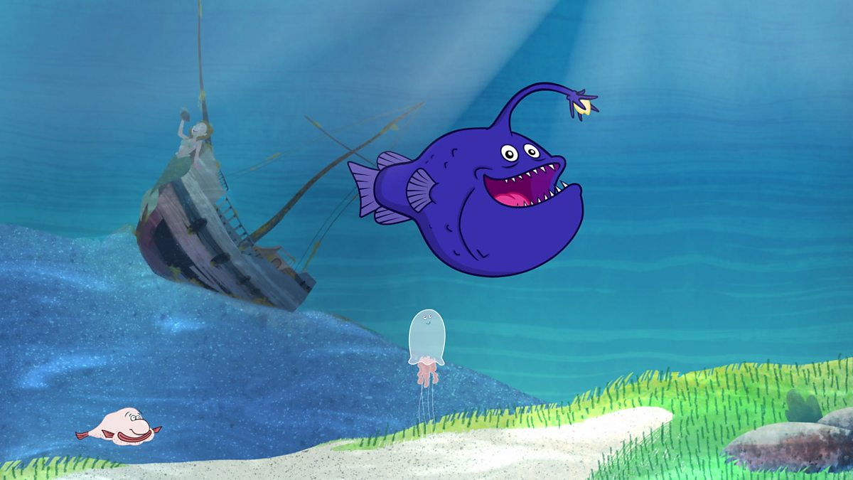 The Football Fish tells us how they live in very deep water and how they have a light attached to the top of their heads which helps to attract food towards them.