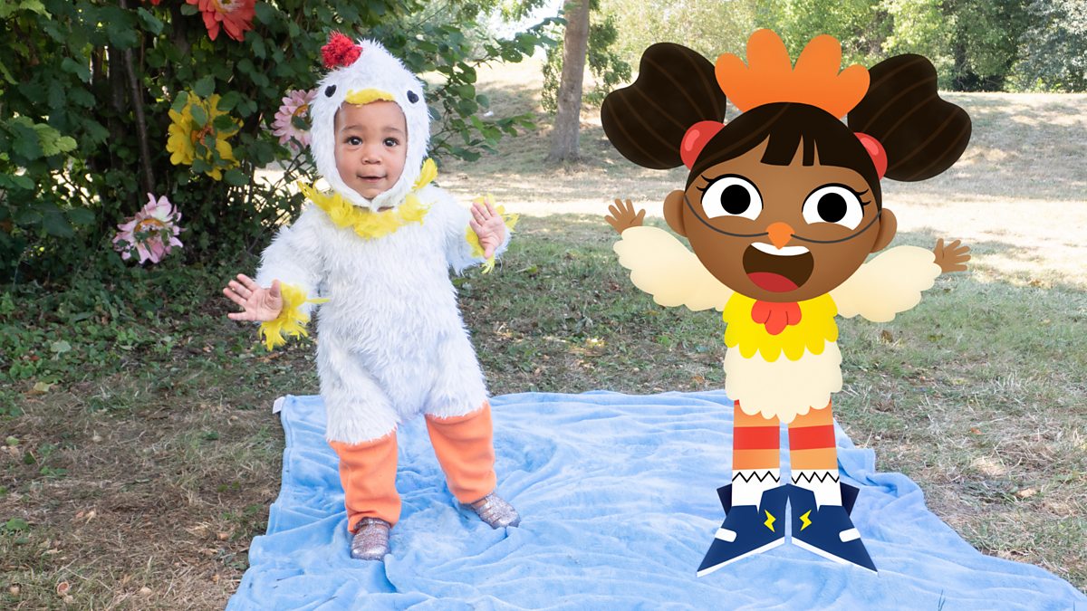 Dee encourages a friend to say ‘chicken’, and we go on a whirlwind word adventure. We see a white chicken, a pecking chicken, a chilly chicken and even a super chicken!
