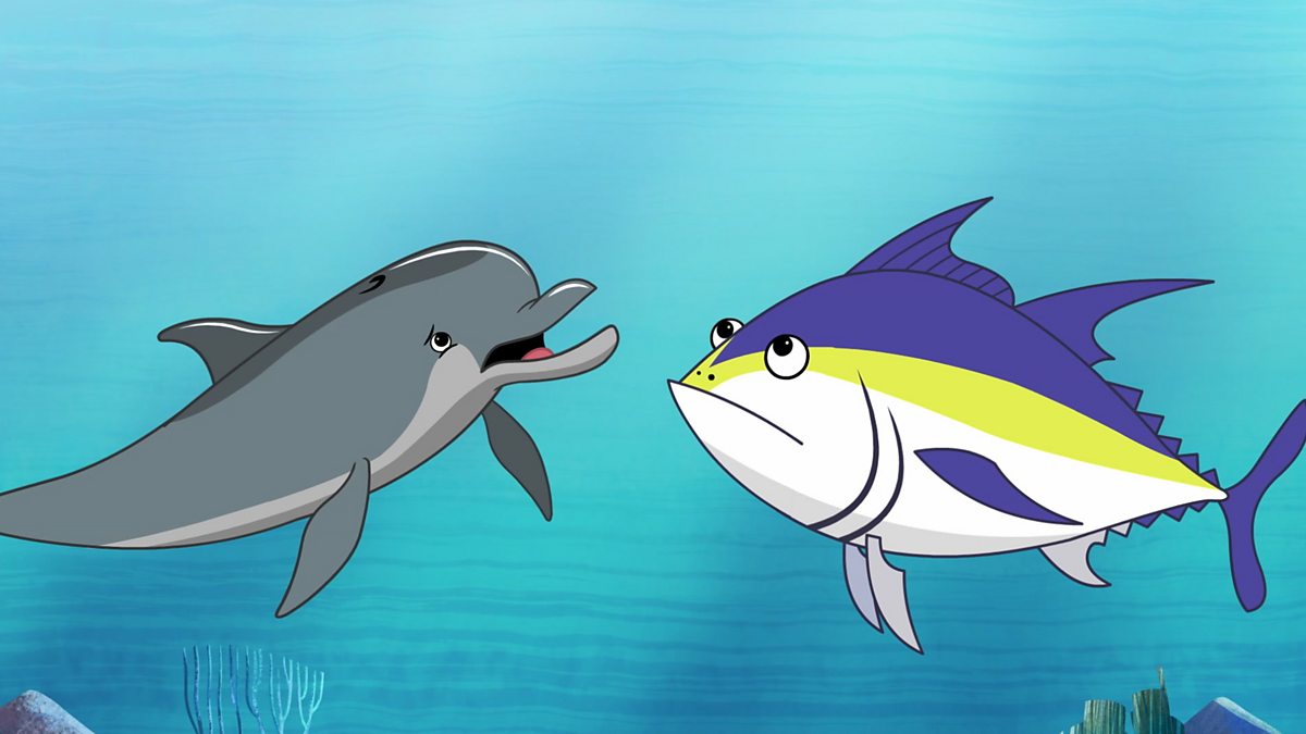 The Tuna Fish tells us how speedy they are and how they are good predators. They hunt with their friends the dolphins - who keep them safe from threats like hungry sharks and killer whales.