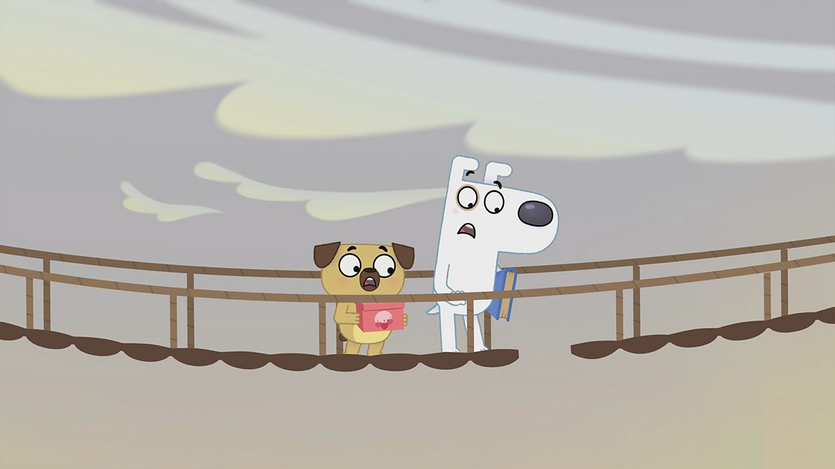Dog and Pug are trying to remember what they did yesterday. Their diary tells them that they found Granny Pug’s lunchbox. They go off to find her, but she is on the other side of a ravine. The neighbouring birds help them and take them across the river.