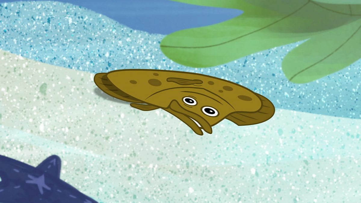 The California Halibut tells us all about himself today. He has two eyes on the same side of his head. This means that the can look up with both eyes, while he is lying down.