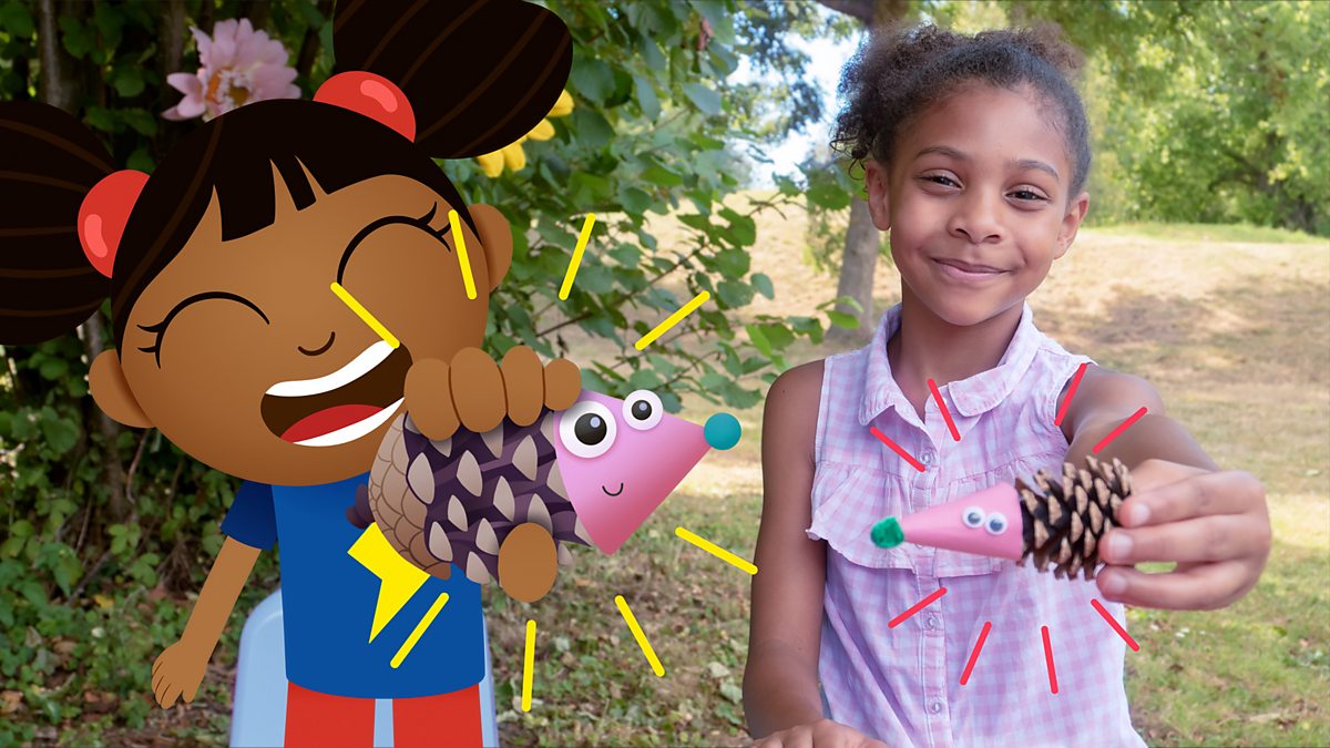 Dee encourages a friend to say ‘hedgehog’, and we go on a whirlwind word adventure. We see lots of hedgehogs – a tickly hedgehog, a hungry hedgehog and a hula-hooping hedgehog!