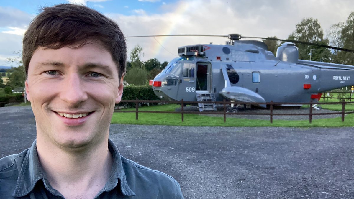 He climbs to the top of the Wallace Monument for panoramic views of the countryside and Stirling Castle. Then it’s a short trip to Blair Drummond Safari Park where he gets up close - giving Dot, the two- tonne rhino, a mud bath. His accommodation for the night is nothing short of unforgettable, a renovated ex-Royal Navy helicopter, and an evening beer in the cockpit slips down nicely after a long day on the road.