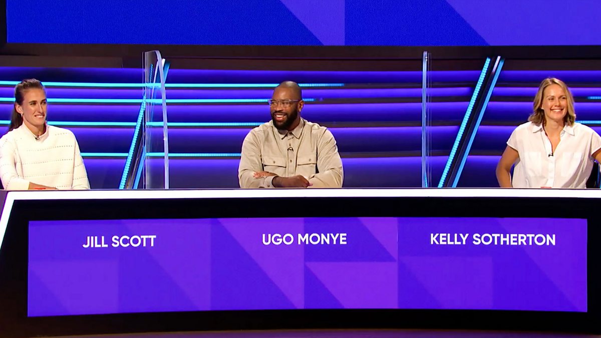 Host Paddy McGuinness and team captains Sam Quek and Ugo Monye are joined by England footballer Jill Scott, snooker player Kyren Wilson, Olympic heptathlete Kelly Sotherton and Commonwealth netball champion Eboni Usoro-Brown.