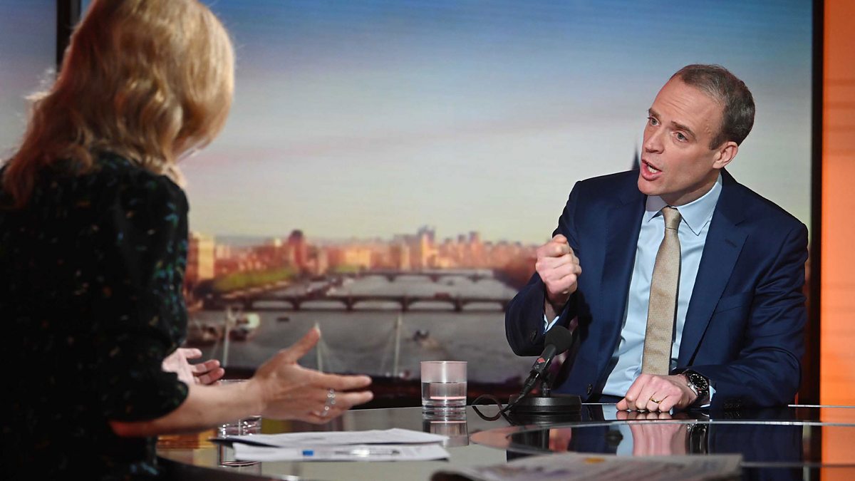 Sophie Raworth's guests are Nicola Sturgeon MSP, first minister of Scotland and leader of the SNP and Dominic Raab MP, justice secretary and deputy prime minister. The newspapers are reviewed by David Morrissey, actor and Madeline Grant, columnist, Daily Telegraph.