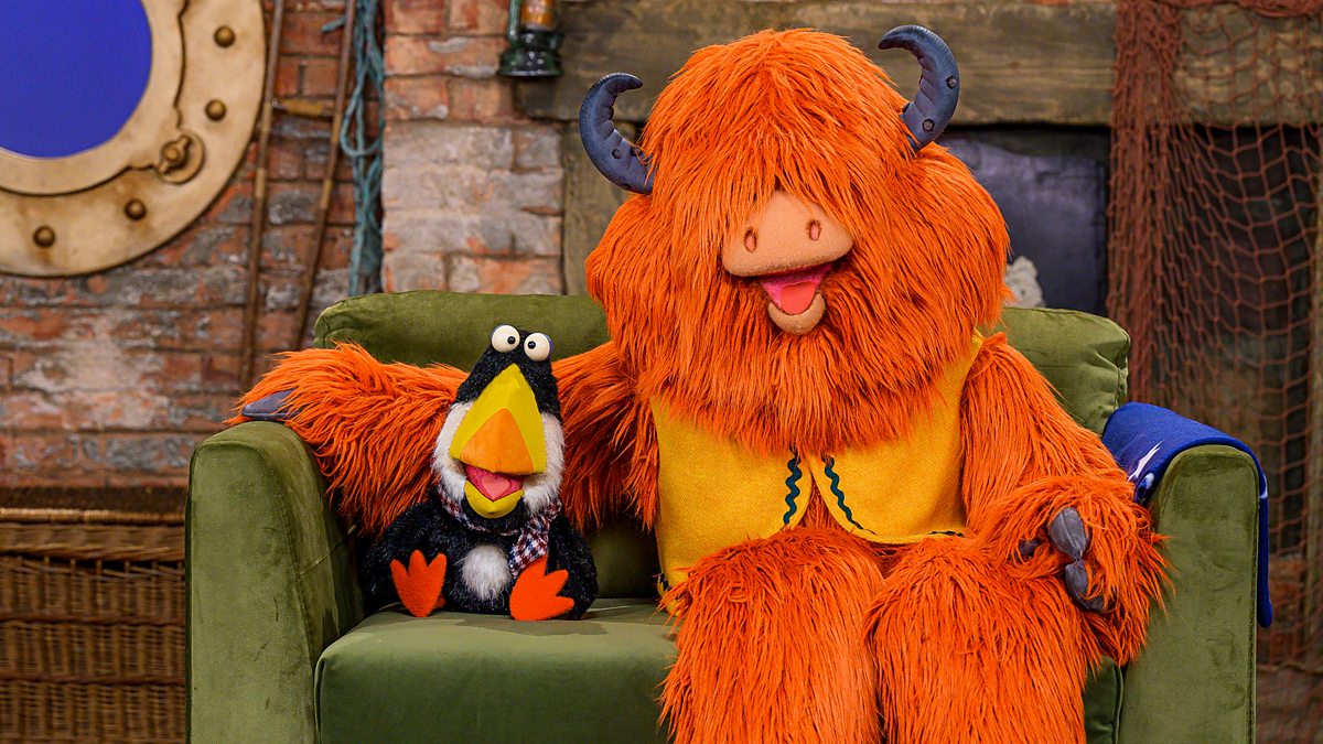 Linda visits her friends Meaban and Moo at their hut to set them a series of challenges. In this programme, she tasks them with painting something blue.