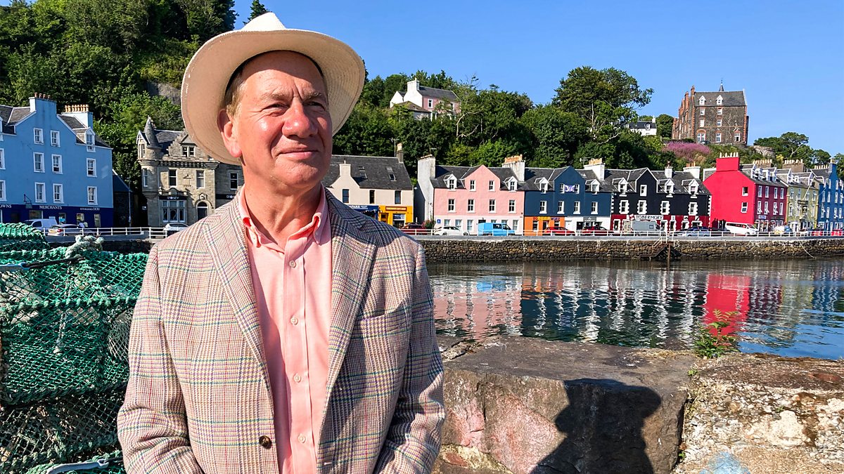 On the quay in the pretty pastel-painted fishing port of Tobermory, Michael checks out the daily catch before heading to a remote beach to help one woman and her dog with an unusual harvest. Seaweed was once an important resource on the island for making glass and soap, and its use is being revived today as a delicacy in the form of chutney. Michael enjoys a gourmet picnic with chutney, cheese and crackers, also from the Isle of Mull.