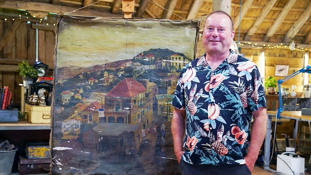 Jay Blades and the team restore a painting of a Lebanese landscape, a pair of silver Shabbat candlesticks and a dilapidated car jack.