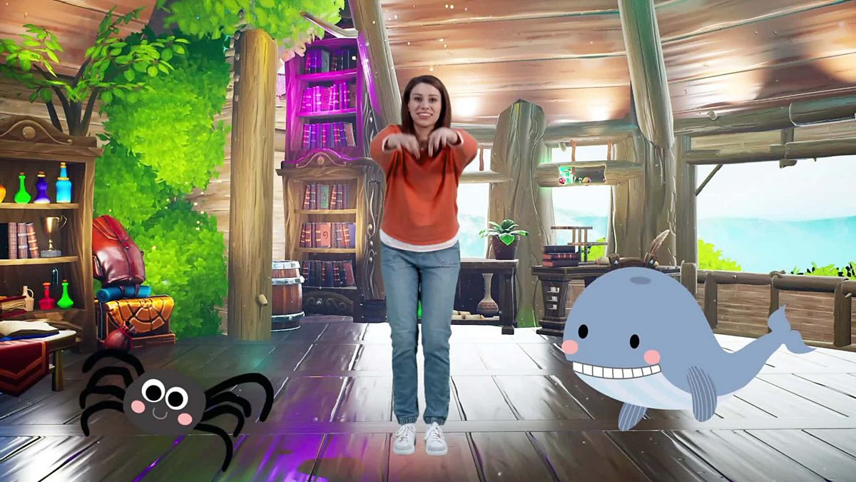 Tha Sophie agus a caraidean a’ bocadaich coltach ri damhan-allaidh agus muc-mhara. Sophie and her friends dance like a spider and a whale.