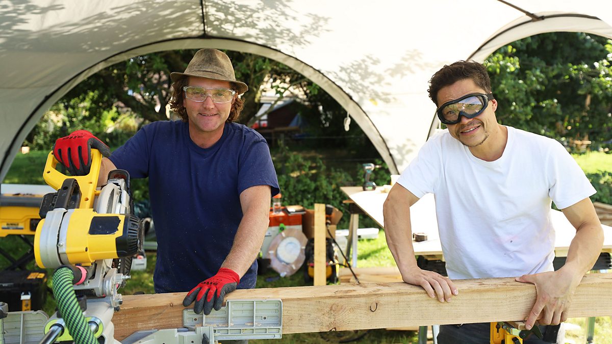 In Wiltshire, planning restrictions mean that primary school teacher Tara can only build temporary structures on a piece of land she inherited. This, along with her desire to only use upcycled or recycled materials, provides a challenge for Simon and his team.