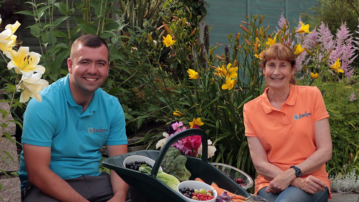 Carole Baxter and Calum Clunie work on the garden’s vegetable plot and fruit growing areas.