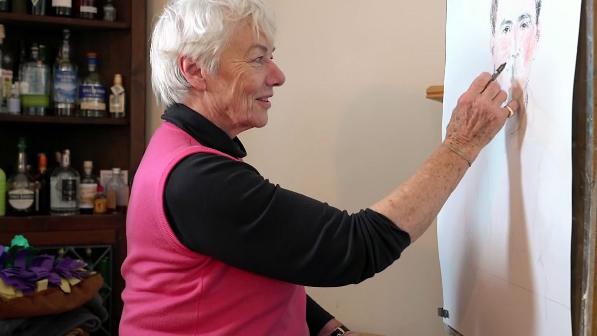 Heather Dewar visits South Uist where she draws a colour portrait of Liam Crouse. Tha Fraoch Nic an Deòir an Uibhist a Deas a’dèanamh dealbh dathte de Liam Crouse.