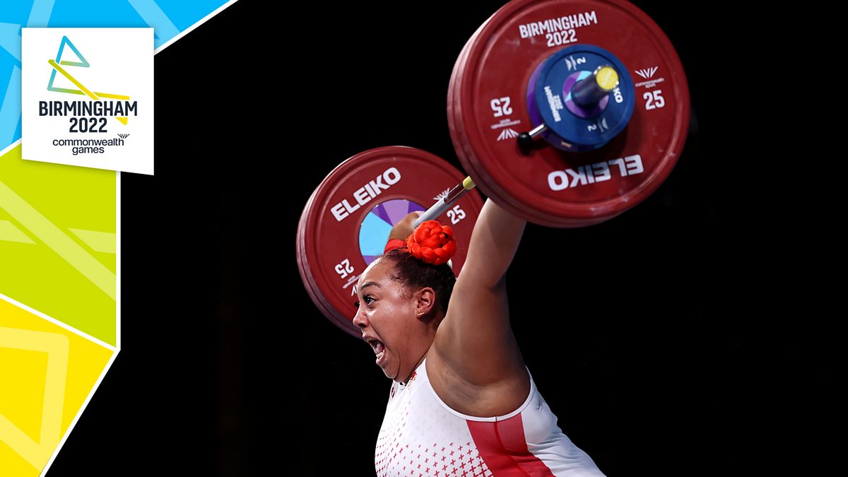 Evie Richards goes for gold while medals are decided in the women's 87+kg weightlifting.