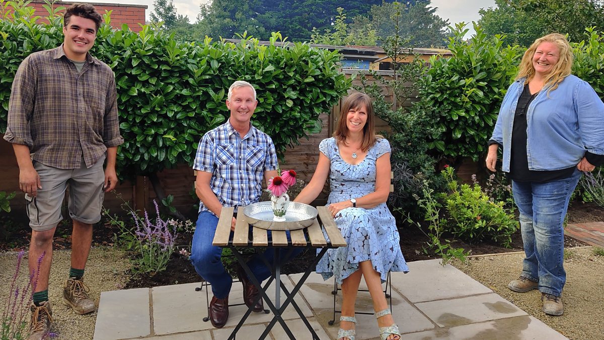 John and Vanessa want a garden reminiscent of Oman, the desert kingdom where they first met. The large raised planter right outside the back doors - nicknamed the sarcophagus - is outdated and dominates the garden, and John and Vanessa are desperate for it to go, but they are keen for the materials to be reused to make the most of their £4,000 budget. John loves a fire, and the couple love to entertain, so they need space for an area in which to socialise. The gloomy garage with north-facing wall needs brightening up, and shade-tolerant planting will do the job. Will Chris’s wadi-inspired desert garden complete with oasis pond win the day, or will Charlie’s more gentle blend of cottage and courtyard persuade the couple to choose her design?