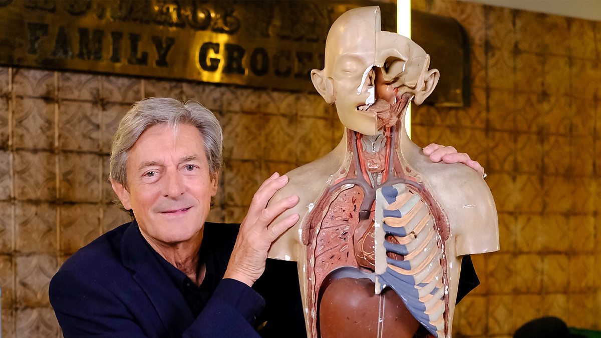 Nigel Havers hosts as five dealers bid against each other to buy items brought in by the public, including an anatomy model, a set of antique printing drawers and a 1950s toy telephone.