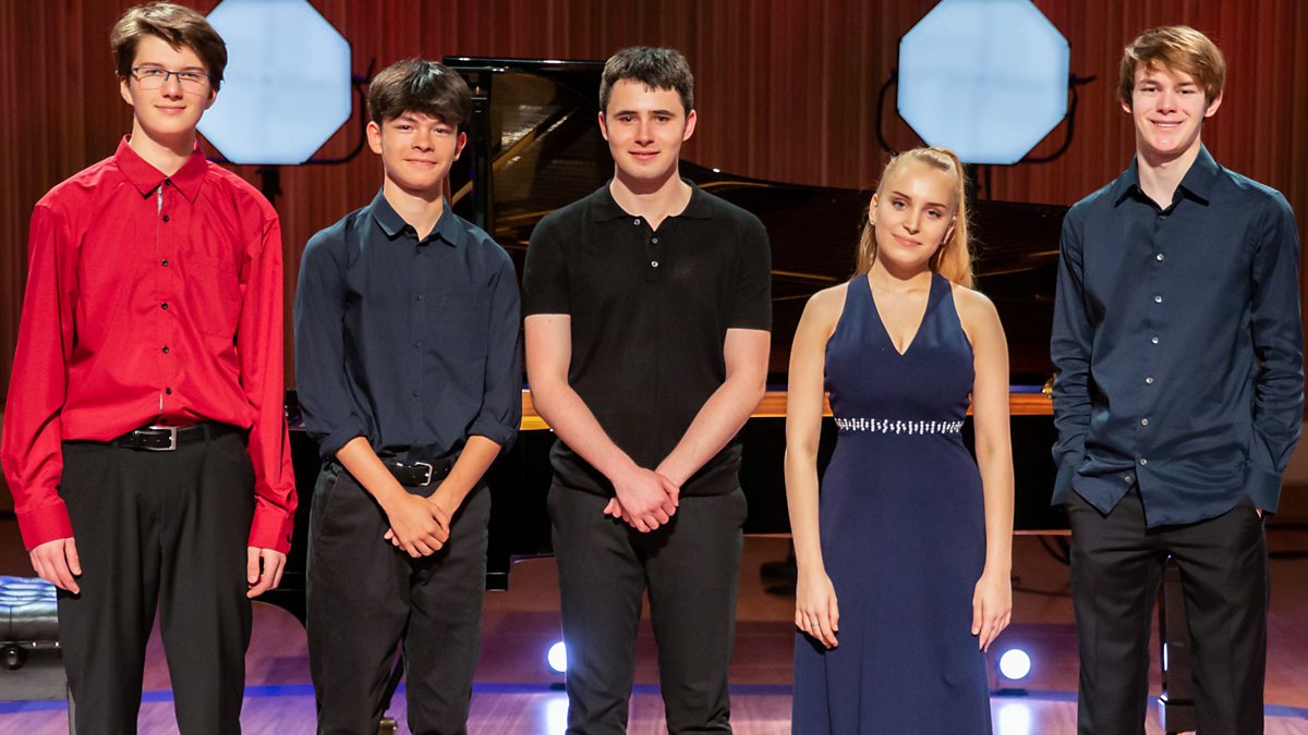 The series begins with the strings final and features violinists Aki Blendis (14), Dawid Kasprzak (16), Edward Walton (16), Clara-Sophia Wernig (16), and viola player Jaren Ziegler (16).