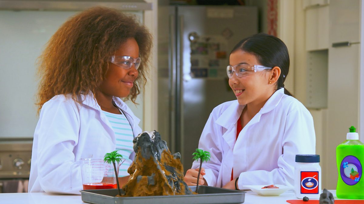 Owain and Tilly find out how to make totally trashy music, discover we all grow and shrink in a day, learn that a volcano can erupt in the kitchen, and order a burger from a robot!