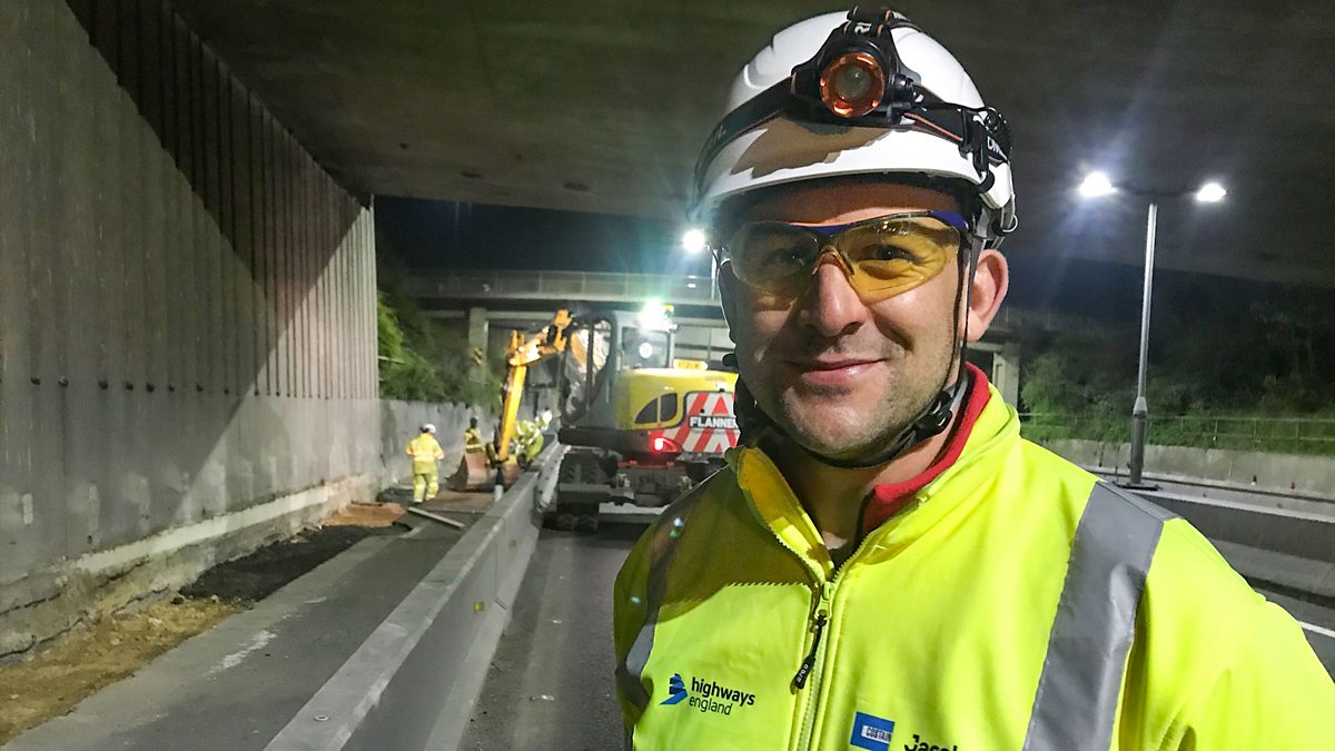 A project to add an extra lane northbound and southbound to this stretch of the road is under way, with the end goal being more space for traffic. We follow Shaun Lee, part of the team that closes the road, and David Lynn, the construction manager on the scheme, who knows all about the frustrations of being stuck in traffic..