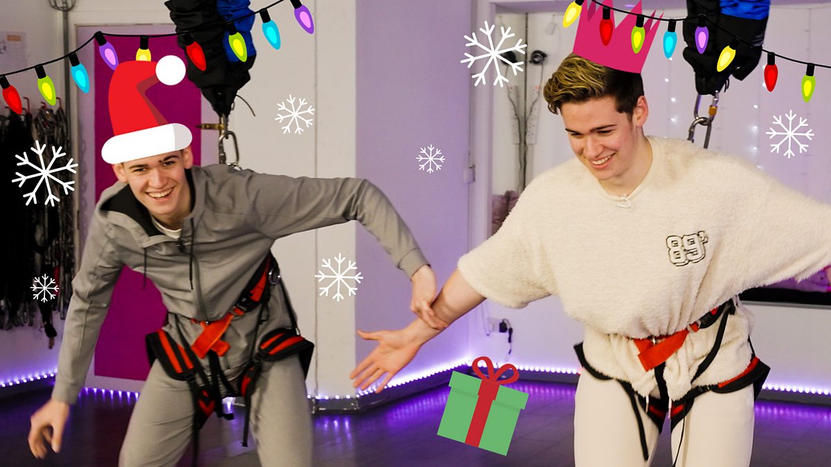 Max and Harvey take on the bungee fitness trend with a Christmas twist. Blue Peter’s Joel Mawhinney shows us some magic, and adds some great tunes to our Add to Queue Playlist.
