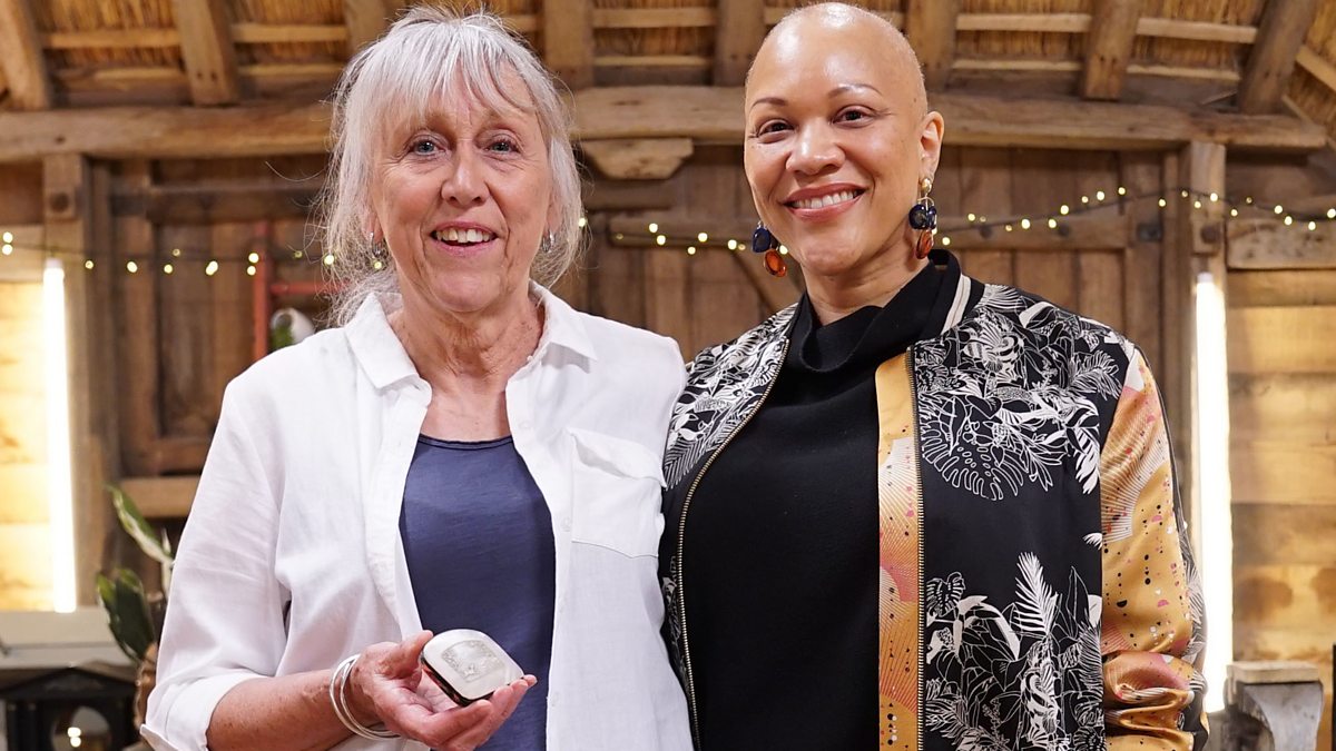 The barn’s first visitors are here to see conservator Suzie Fletcher. Barbara and her daughter Zeffy have a delicate and very fragile coil purse that was gifted to Barbara by her granny when she was a little girl. The outer casing is made from engraved mother of pearl and the coin sections from red silk and leather. Barbara’s three young daughters were just as enamoured with it as she was, especially Zeffy.