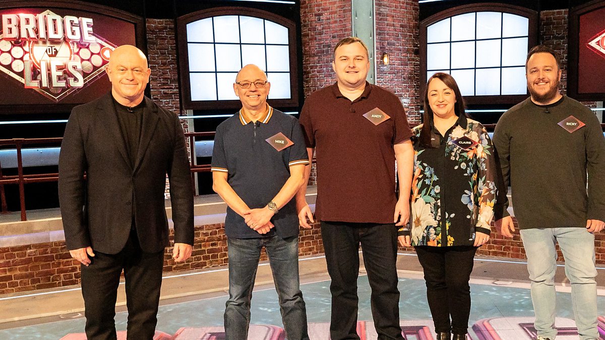 Ross Kemp presents as a team of four family and friends - Andy, Claire, Mike and Ricky - take on the Bridge of Lies.