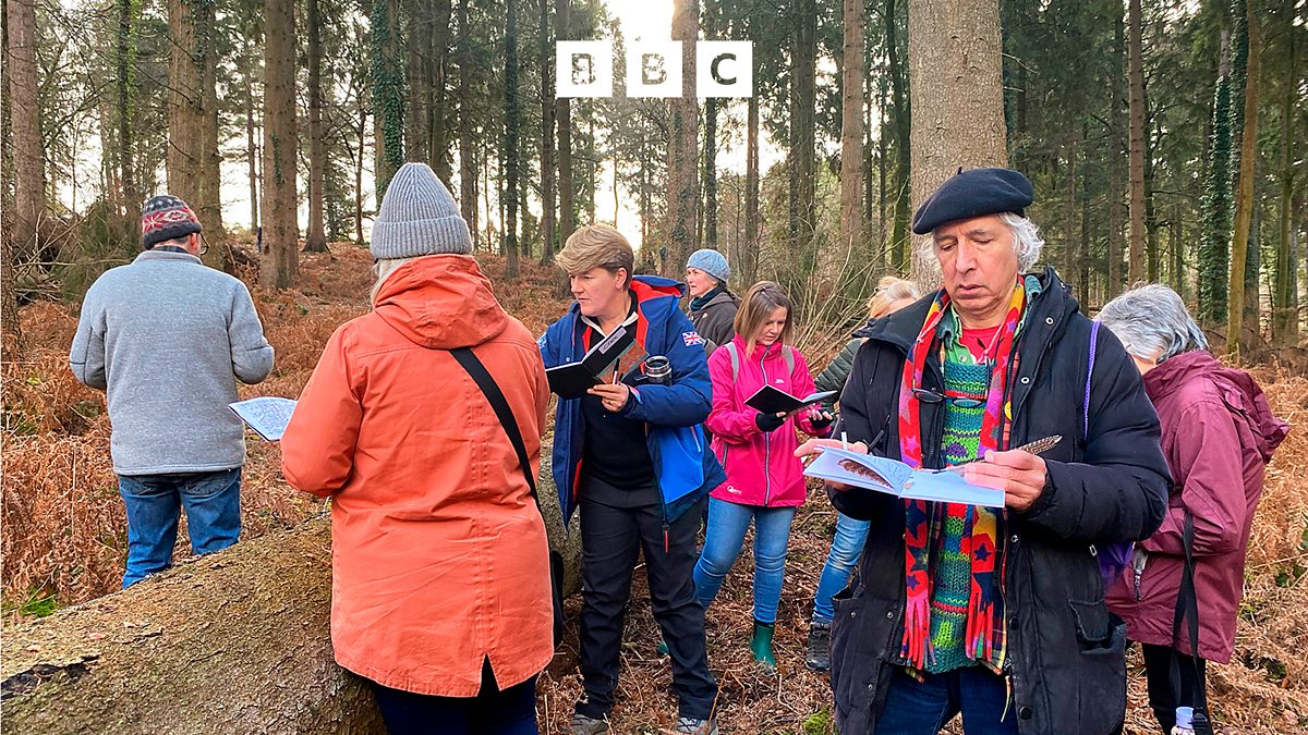 Clare Balding walks with an art group in the Forest of Dean.