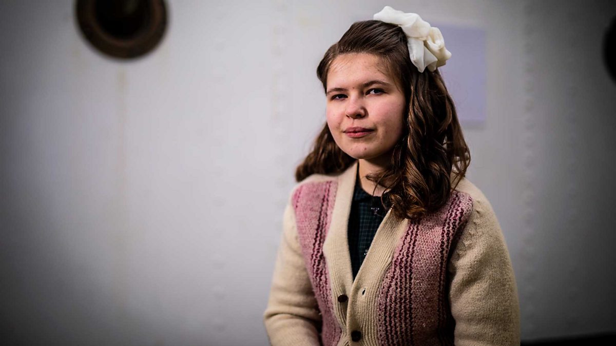 Air bòrd a' Mharloch, tha an nighean òg Brìghdeag ag innse mun bheinn-deighe a chunnaic i. On board the Marloch, young girl Bridgit tells of the iceberg that she saw.