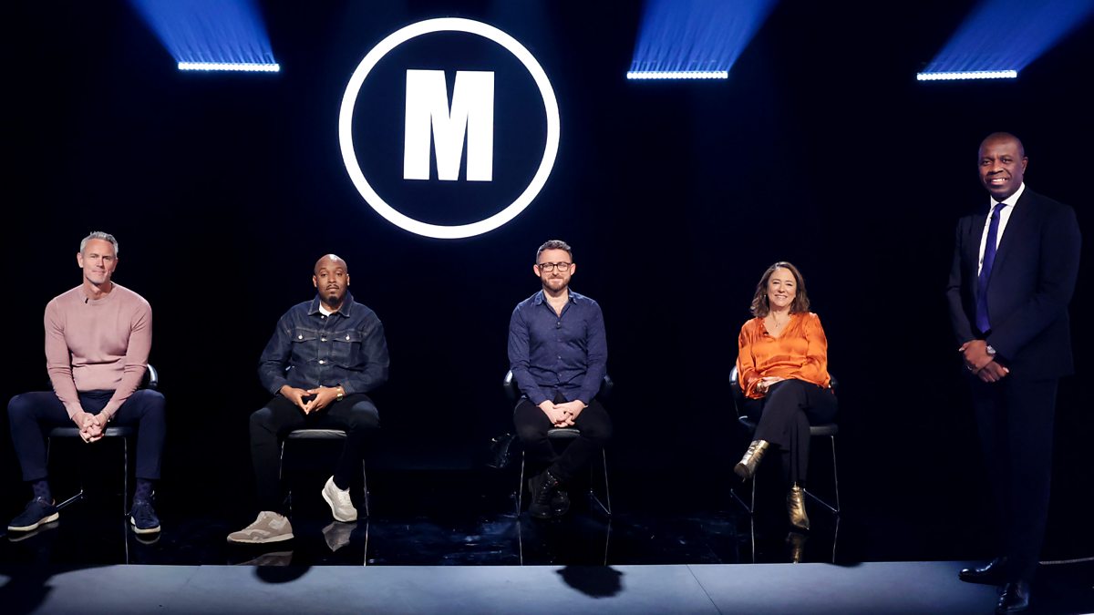 Clive Myrie asks the questions in another celebrity episode of the classic quiz. Former Olympic swimmer Mark Foster, stand-up comedian Dane Baptiste, BBC film critic Ali Plumb and actor Arabella Weir are in the famous black chair answering questions on Madness, Scarface, the radio series The Hitchhiker's Guide to the Galaxy, and Sophie Tucker.