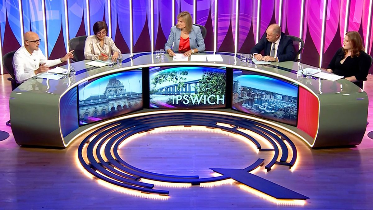 Fiona Bruce presents an hour of topical debate from Ipswich in Suffolk. On the panel: Kevin Hollinrake, Thangam Debbonaire, Ella Whelan and Matthew Syed.